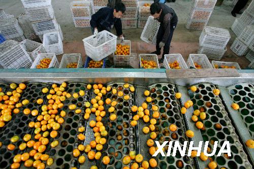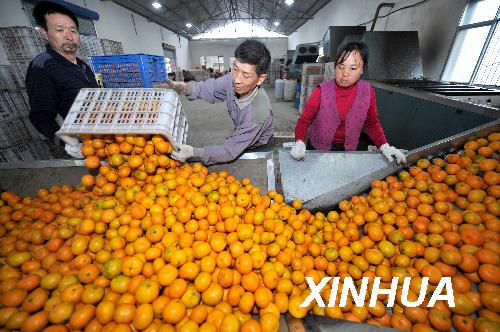 進入11月以來,全國四大柑橘帶之一的湖北省宜昌市柑橘銷售逐漸回暖,11月5日,宜昌市日銷售柑橘1.4萬噸,接近日常銷售平均水平。據(jù)介紹,近年來宜昌市采取多種措施加大無公害柑橘基地建設力度,著力打造宜昌優(yōu)質(zhì)柑橘品牌。2008年宜昌市142萬畝優(yōu)質(zhì)柑橘產(chǎn)量達到148萬噸。新華社記者 郝同前 攝