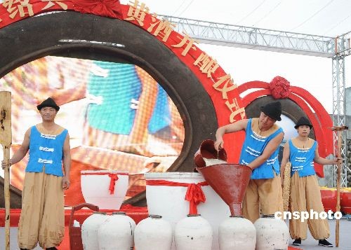 11月7日,2008中國紹興黃酒節(jié)在浙江紹興舉行。紹興是黃酒之鄉(xiāng),也是全球黃酒生產量最大的城市。目前全市有黃酒企業(yè)86家,年產量達到41.3萬噸、年銷售額33.2億元,分別占全國的17.2%和35.6%。紹興黃酒行業(yè)擁有7個中國馳名商標、4只中國名牌產品和6家中華老字號。今天展示的15家“紹興黃酒”冠名企業(yè),是其中的佼佼者,他們的總產量和銷售收入占據(jù)全市的90%。黃酒節(jié)期間,紹興將舉辦黃酒展覽會、黃酒開釀儀式,酒類趣味活動,黃酒品牌推廣文藝活動,黃酒品嘗活動以及院士紹興行和一系列經貿文化活動等。中新社發(fā) 袁云 攝