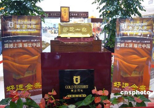 2008年11月10日,一根重達100公斤的大金條在北京菜百商場亮相。據(jù)悉,這根入選上海大世界基尼斯紀錄的金條歷時半年制作而成,如此重的身價在貴金屬制造史上堪稱“金條王”。中新社發(fā) 玉龍 攝