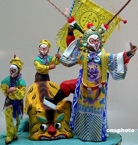 11月10日,正在江蘇南京博物院舉行的“梨園物語梨園物語——南京博物院藏戲劇文物展”上,由惠山泥人大師喻湘漣等人創作的戲劇泥人,生動再現了傳統和現代戲曲中的經典場面。中新社發 文寶 攝