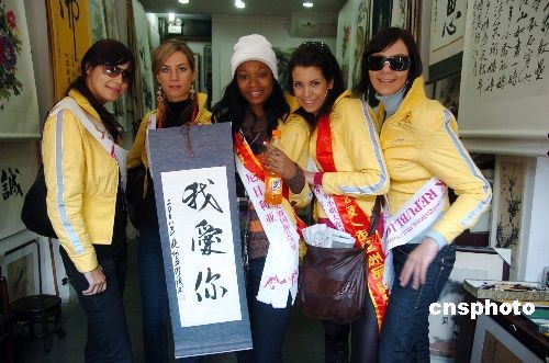 11月12日,參加2008世界模特小姐杭州巡演的60多名佳麗來到杭州“清河坊”歷史古街,與杭州市民近距離接觸,真切感受中國文化。中新社發 施健學 攝