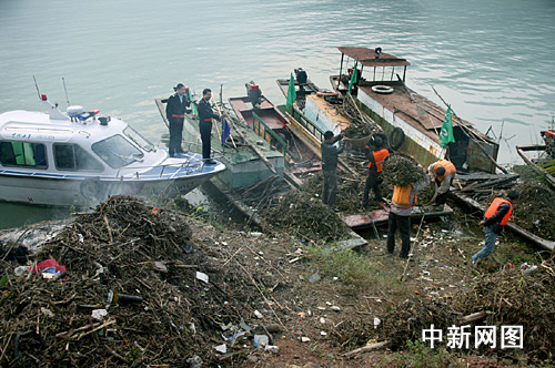 前不久,長江上游支流連降暴雨,加上三峽庫區175米蓄水,水位不斷增高,兩岸垃圾廢物順水而下,庫區水上垃圾陡然增多,形成一條又一條短則幾百米、長則千余米的垃圾帶,船舶航行謹小慎微,生怕垃圾纏住螺旋槳;玻璃鋼船繞道航行,擔心棍棒垃圾刺破船體,給船舶安全航行造成很大困難。盡管相關部門在沿線港區水域組織清漂,但力量遠遠不夠。長江海事呼吁,庫區沿江各級政府、相關部門要高度重視庫區清漂,增強環保意識和安全意識,加大投入,增加清漂力量,共同構建清潔、安全、美麗的三峽庫區。孫加寶 攝