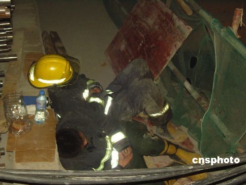 2008年11月15日下午,浙江省杭州市蕭山區(qū)風(fēng)情大道地鐵1號(hào)線施工現(xiàn)場發(fā)生重大塌陷事故,救援人員徹夜奮戰(zhàn)抽取積水。中新社發(fā) 王磊 姜越潮 攝