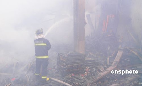 11月16日上午8時,江蘇蘇州市相城區元和街道建元路華東家具城5號館后面的家具廠倉庫突發火災,蘇州市蠡口消防中隊接警后迅速趕到現場進行撲救,經過近兩個小時的奮戰,將大火撲滅。目前,火災原因還在調查中,暫無人員傷亡報告。中新社發 蘇民 攝