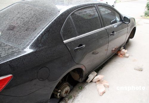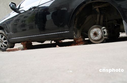 11月17日,河南省漯河市建設路豫苑小區內一輛上海通用轎車被盜走了3個輪胎。目前警方正在調查此案,但保險公司表示對此類案件不予賠伏。中新社發 李慧宇 攝