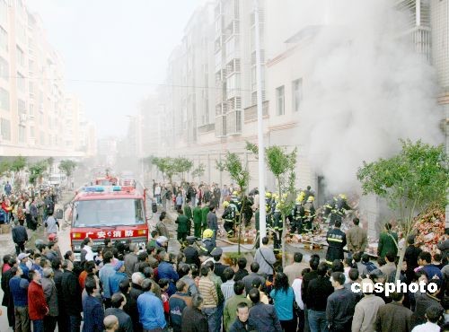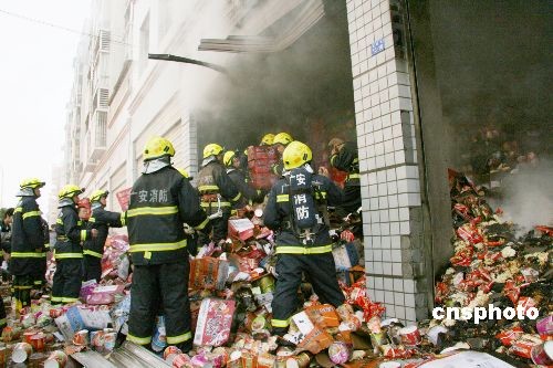 11月19日中午11點45分許,四川省廣安市 “康師傅”方便面廣安地區總代理的倉庫里價值60多萬的貨物被無情大火燒掉大半。事發后,廣安區公安分局110巡警大隊、市區消防大隊第一時間趕到現場,開展了滅火工作。據了解,失火的兩個門市面積大約有100平方米,里面裝了60多萬元的貨物,這次損失至少達40萬元左右;馂脑蛘谡{查之中。中新社發 廣宣 攝