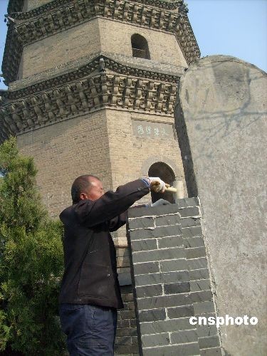 圖:中國“比薩斜塔”文峰塔開始糾偏
