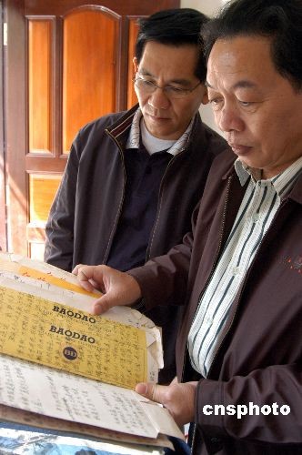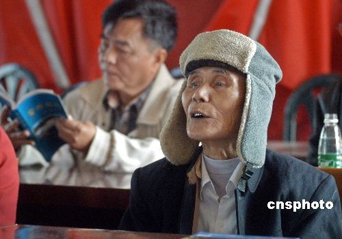 2008年11月29日,84歲高齡的海南瓊海市長坡鎮藍田村民李士東老先生所著的《窗外微聞》一書發行儀式在長坡鎮政府舉行。李老先生5年前曾自費出版了一部24萬字的文集《藍田穗》,成為十里八鄉的一大新聞。隨后,他又花費兩年時間,在香煙盒紙上一手持放大鏡一手拿筆寫成這部16萬字的文集并自費印刷發行。中新社發 蒙鐘德 攝