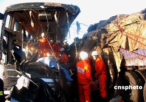12月2日上午8點40分許,國道314線新疆庫車境內(nèi)762公里處,一輛拉煤貨車與一輛從阿圖什開往烏魯木齊的大客車迎頭相撞,目前已導致21人死亡,12人受傷。事故發(fā)生后,新疆阿克蘇地區(qū)立刻啟動應(yīng)急預案,交通部門負責人都已趕赴現(xiàn)場參與指揮救援。庫車縣已成立救治小組,有關(guān)事故原因正在進一步調(diào)查中。中新社發(fā) 汪渝 攝