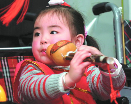 “春晚的導演叔叔和阿姨們,我們渴望上春晚!”昨日下午3時許,一支由12名地震致殘的孩子組成的“輪椅樂團”,在川大華西醫院地震康復中心舉辦了一場葫蘆絲演奏會。表演結束后,孩子們喊出了“渴望上春晚”的心聲。據悉,“輪椅樂團”的平均年齡僅10歲,其中最小的是3歲的宋馨懿。