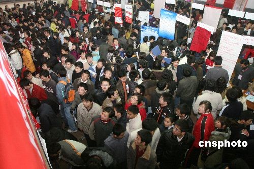 12月12日,河南大學2009屆畢業生供需見面洽談會會在明倫校區田徑館舉行,來自省內外的200余家用人單位前來選聘英才,近萬名學子冒著嚴寒爭相與用人單位洽談并簽訂就業意向。中新社發 凱楓 攝