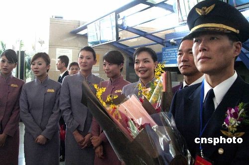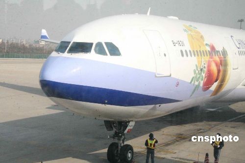 臺灣地區中華航空的CI七九八九越過海峽,于十二月十五日十點十分飛抵浙江杭州蕭山機場。機身上印著臺灣的水果。中新社發 汪恩民 攝