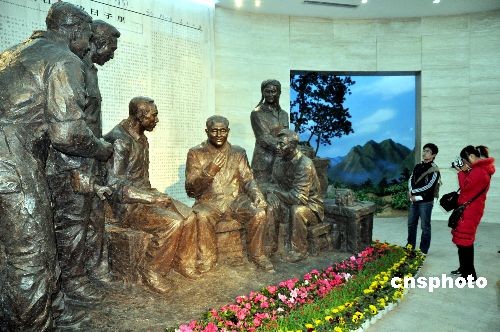 12月18日,一尊長5.8米,寬1.98米,高3米“鄧小平和工人們在一起”大型群雕銅像亮相江西省新建縣“小平小道” 陳列館,吸引著眾多參觀者參觀瞻仰。當日,“小平小道”陳列館正式開館對外開放。中新社發 段長征 攝