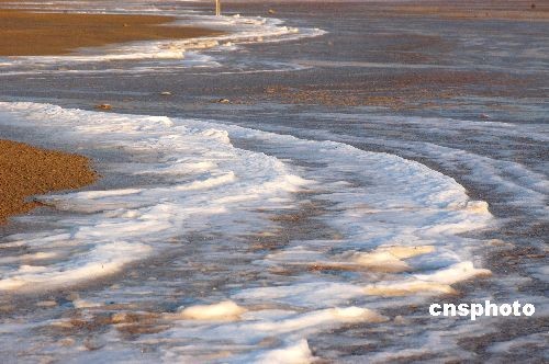 12月22日,連云港受強冷空氣影響,最低氣溫零下8攝氏度。在西北大風(fēng)作用下海上生成了滔天巨浪,濺在海岸邊護欄上的海水凍結(jié)成了晶瑩剔透的冰凌,沙灘上也是白茫茫的一片雪地,給寒冬里的連云港海濱增添了一道生態(tài)風(fēng)景線,不少游人觀賞到難得一見的景觀。中新社發(fā) 王春 攝