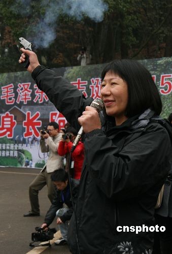 12月26日,隨著羽毛球世界冠軍唐九紅一聲發令槍響,紀念毛澤東同志誕辰115周年健身長跑大賽在湖南韶山開跑,近萬名健兒從毛澤東故居出發,經北環線至火車站廣場,全程5000米。韶山每年都要在毛澤東誕辰日舉行紀念性的長跑比賽,至今已是第23屆。中新社發 鄧霞 攝