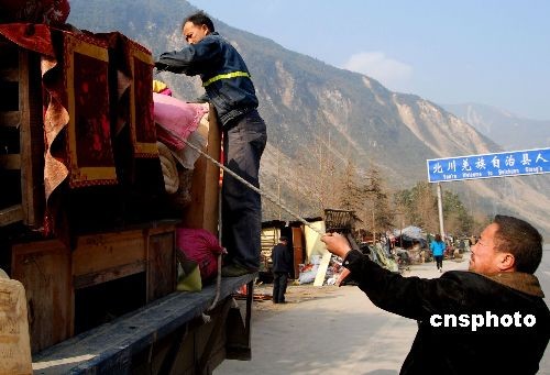 12月26日,北川第一羌寨--貓兒石“吉娜”羌寨竣工,當地羌寨居民開始陸續搬進新居。中新社發 胥輝 攝