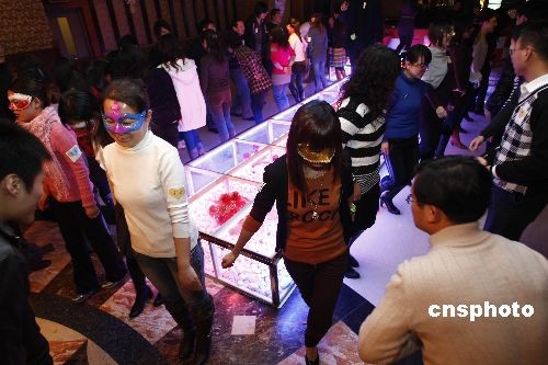 12月27日,百余名單身青年在北京參加一場化妝舞會。年輕人在歡快的樂曲中翩翩起舞。面具下的女青年拋開羞澀,與男舞伴竊竊私語。該活動的初衷也是為了引導(dǎo)年輕人在擇偶時拋開外在條件,認識到“相容成就幸;橐觥辈攀墙】祷閼倮砟睢V行律绨l(fā) 楊影懿 攝