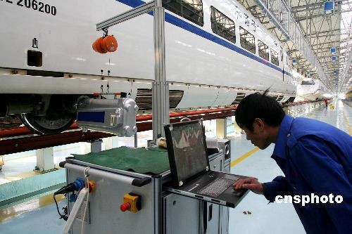 12月30日,工作人員在北京火車車輛段內(nèi)對動(dòng)車組列車進(jìn)行全面的檢修,以便迎接即將到來的春運(yùn)。2009年中國春運(yùn)期為1月11日至2月19日,共計(jì)40天,北京鐵路局從1月1日起提前10天進(jìn)入春運(yùn)。春運(yùn)期間,北京西站上下車旅客預(yù)計(jì)將首次超過1000萬人次。中新社發(fā) 富田 攝