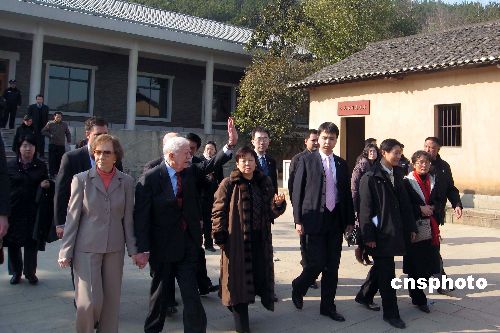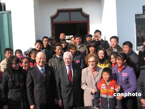 一月十四日,美國前總統吉米·卡特夫婦一行七人抵達武漢,并赴前中國國家主席李先念的故鄉湖北紅安縣參觀訪問。中國對外友協副會長李小林、湖北省副省長田承忠等陪同參訪。中新社發 艾啟平 攝