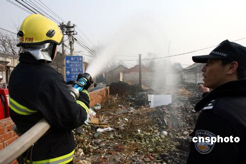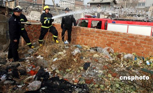連日,北京遇大風(fēng)降溫天氣。為確保春節(jié)期間燃放煙花爆竹等消防安全,近日,北京崇文警方會(huì)同消防部門清理市民居住區(qū)內(nèi)各樓道及房前屋后的可燃物,拆除在消防通道上搭建的違章建筑,并派出消防車專門對(duì)前門地區(qū)重點(diǎn)部位、火災(zāi)隱患較為嚴(yán)重的院落實(shí)行人工降雨,確保春節(jié)期間消防安全。中新社發(fā) 胡建強(qiáng) 攝