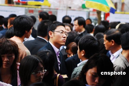 2月4日,2009年春節過后,海南省人才交流市場的首場人才交流會在海口人才交流中心舉行。共有140多家用人單位進場招聘,提供近3000個工作崗位。截止記者發稿時統計,已經有六千多名求職者到招聘會現場。中新社發 周運杰 攝