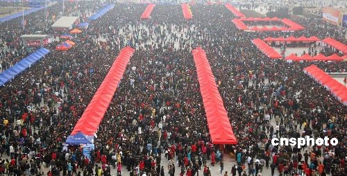 2月6日,“2009年河北省畢業生就業市場”在石家莊市東開發區火炬廣場舉行。這是河北省今年首場、也是全年規模最大的一次畢業生就業活動,招聘大會有1362家單位報名,提供近3萬個工作崗位,招聘單位和崗位數量均創該省歷史新高,預計將有10萬名求職者爭搶“飯碗”。