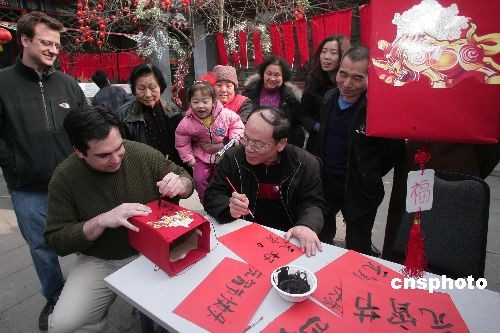 2月8日,中國傳統元宵節將至,北京東四四條胡同的一座四合院里,社區居民和同住在社區里的美國、法國友人一起慶祝元宵佳節,一起包湯圓,猜燈謎,做花燈,體驗中國傳統節日和民俗。中新社發 杜洋 攝