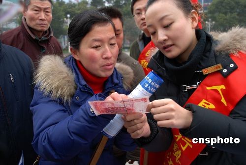 2月24日上午,反假貨幣“壁壘行動”在江蘇鎮江大市口廣場啟動。據悉,由中國人民銀行鎮江市中心支行組織全市各金融機構以及公安部門將進行為期三個月的反假貨幣宣傳活動,活動還將成立反假宣傳小分隊深入到社區、商場、農貿市場、車站、農村等地向群眾宣傳反假幣知識和相關法律常識。中新社發 封波 攝