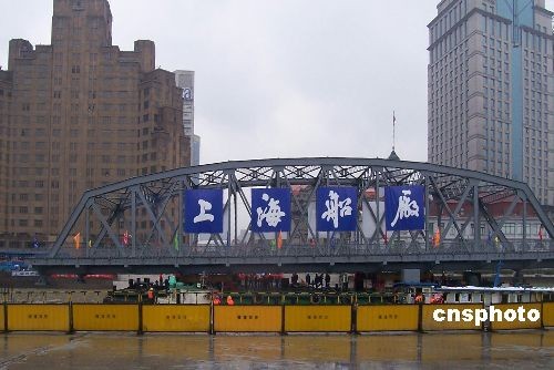 2月25日,經(jīng)過(guò)一年修繕的上海外白渡橋回到它已安然矗立百年的蘇州河河口,開始復(fù)位工程。中新社發(fā) 周東潮 攝