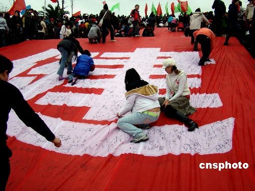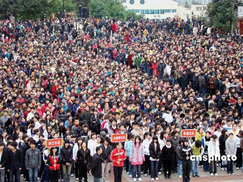 3月1日,重慶市云陽縣組織萬余名三峽移民等在新縣城1500余級的登云梯開展全民健身登梯活動,倡導健康生活方式。中新社發 劉興敏 攝