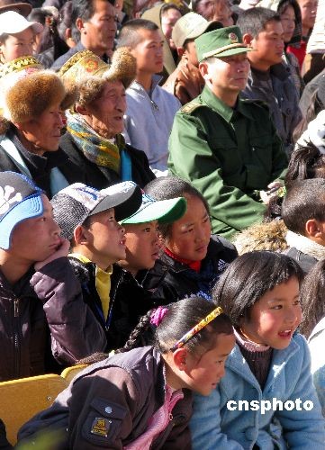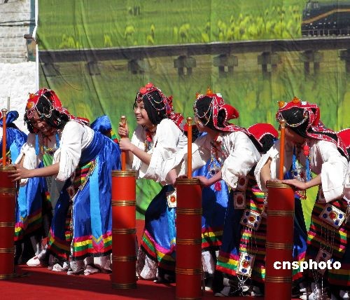 3月8日,西藏軍區文工團到拉薩市吉崩崗社區,為居民們帶來專場演出。中新社發 劉舒凌 攝