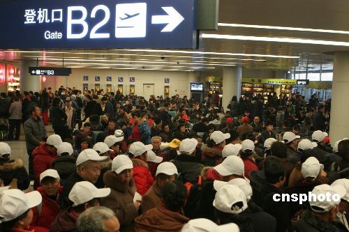 3月9日晨,成都雙流國際機場遭遇春季首場大霧天氣襲擊,為此雙流機場發布了三級預警信號,機場被迫關閉5個多小時,直接造成100余個進出港航班延誤,致使近萬名出港旅客受阻于機場,不能按時飛往目的地。中新社發 呂俊明 攝