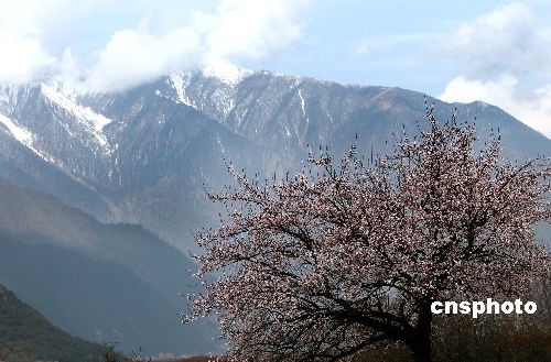 3月23日,西藏川藏公路旁成片的桃花盛開,在雪山的映襯下分外美麗。中新社發 杜洋 攝