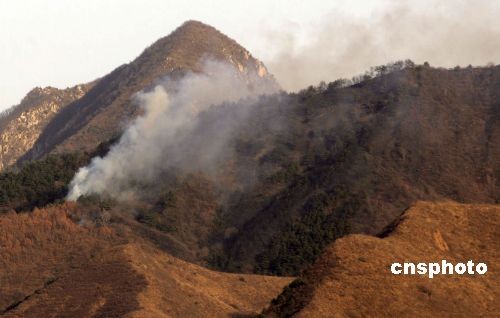 3月25日下午1時許,北京密云縣太師屯鎮(zhèn)二道河子村南側(cè)山林起火,附近村民和多個鎮(zhèn)撲火隊前往現(xiàn)場滅火。因遇大風(fēng),滅火期間又發(fā)生復(fù)燃,至昨晚11時許,大火被撲滅,過火面積達(dá)上千畝,暫未出現(xiàn)人員傷亡情況。起火原因仍在調(diào)查中。中新社發(fā) 曉村 攝