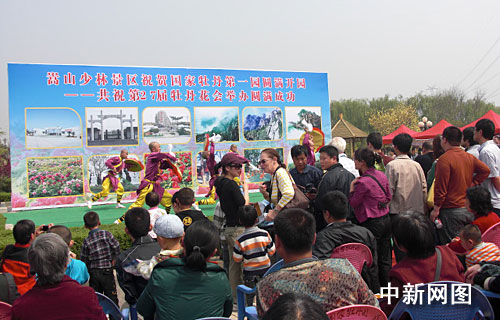 四月十四日上午九時,記者在龍門石窟秦時廣場及國家牡丹園廣場看到,在少林功夫表演臺前,聚集了大量的來自海內(nèi)外的游客。臺上弟子精彩的少林功夫及罕見絕技,令現(xiàn)場游客驚異無比,掌聲不斷。很多游客忍不住拿起手中的相機(jī)、手機(jī)進(jìn)行拍照留念,留下難忘的少林印象。