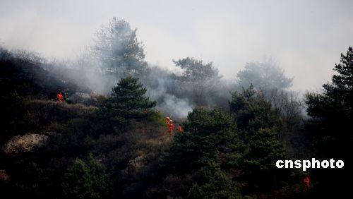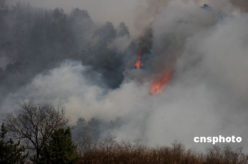 2009年4月17日下午,山西省盂縣上社鎮(zhèn)磨盤(pán)村磨盤(pán)山發(fā)生森林火災(zāi),因風(fēng)力過(guò)大,大火肆虐,整個(gè)森林煙霧彌漫。森林火災(zāi)發(fā)生后,盂縣人民政府和當(dāng)?shù)赜嘘P(guān)部門(mén)調(diào)集力量迅速到現(xiàn)場(chǎng)。經(jīng)過(guò)緊急撲救,截止下午5時(shí)30分火情已基本得到控制,暫無(wú)人員傷亡。目前,起火原因正在調(diào)查中。中新社發(fā) 程瑜