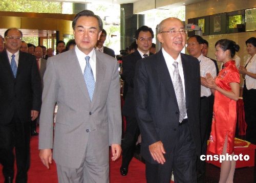 中國國民黨主席吳伯雄率參加第五屆兩岸經(jīng)貿文化論壇的中國國民黨代表團,7月10日下午乘臺北直飛的包機抵達湖南長沙黃花機場。中共中央臺辦主任王毅等到機場歡迎。第五屆兩岸經(jīng)貿文化論壇將于7月11日至12日在長沙舉行,論壇的主題是兩岸文教交流。中國國民黨、親民黨、新黨、無黨團結聯(lián)盟、部分民進黨人士,和眾多臺灣文化、教育、宗教屆和經(jīng)濟界代表與會。中新社發(fā) 傅煜 攝