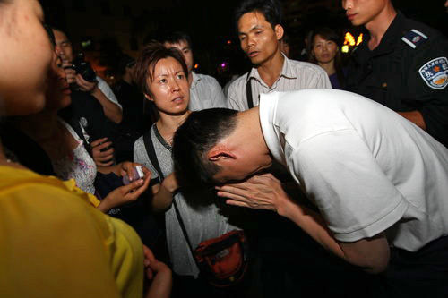 當(dāng)日晚10時(shí)30分許,小販仍不依不饒,南城街道黨委副書記、公安分局局長(zhǎng)蘇東出現(xiàn)在銀豐路上。他主動(dòng)找來陳紅梅。陳紅梅在蘇東誠(chéng)懇勸告中放棄攔車,這時(shí)銀豐路開始“解圍”。蘇東對(duì)陳紅梅說,他已經(jīng)罵過了動(dòng)粗的執(zhí)法人員,并建議陳紅梅與南城街道辦、南城綜合執(zhí)法分局的領(lǐng)導(dǎo)對(duì)話。