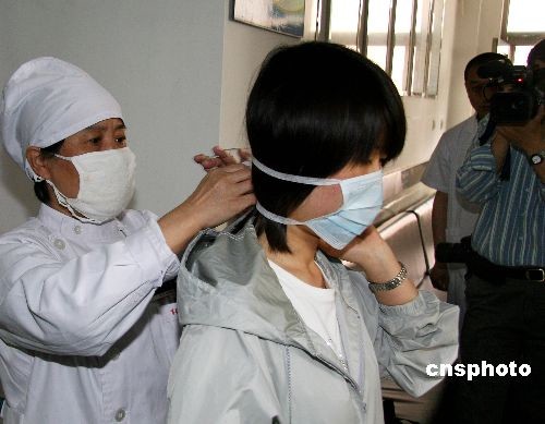 針對(duì)中國(guó)內(nèi)地相繼出現(xiàn)輸入性甲型H1N1流感確診病例,北京中醫(yī)院5月26日上午組織醫(yī)生護(hù)士進(jìn)行防控甲型H1N1流感實(shí)戰(zhàn)演練,模擬一名加拿大留學(xué)生患者在該院就診時(shí)出現(xiàn)甲型H1N1流感狀況。演練中,對(duì)在診治過程中容易忽視的某些環(huán)節(jié)進(jìn)行了完善。中新社發(fā) 劉震 攝