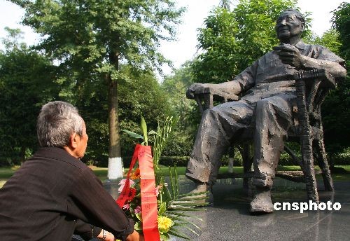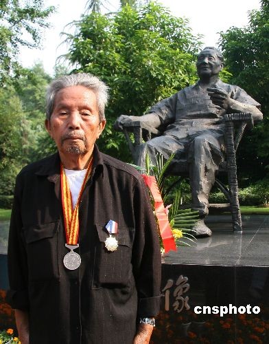 6月6日,在緬甸生活長達60多年的中國遠征軍老兵、廣安籍88歲老人劉召回在四川廣安鄧小平紀念園鄧小平銅像前獻花。當日,剛從緬甸回國探親的劉召回,為親眼看一看祖國的繁榮富強,感謝鄧小平的好政策,專門從四川省廣安市岳池縣裕民鎮陶家溝村老家由親人陪同來到鄧小平紀念園緬懷鄧小平同志的豐功偉績。據了解,1942年3月,在抗日戰爭最為關鍵的時刻,10萬中國遠征軍從畹町走出國門,抗日救國。戰后有上千遠征軍留在了戰場緬甸,開始了長達數十年的異鄉生活。中新社發 杜修戰 攝