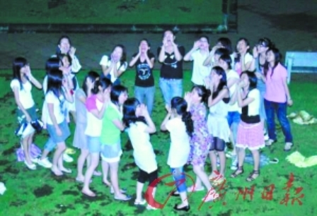 6月26日晚11時(shí),華師05級(jí)經(jīng)濟(jì)學(xué)專業(yè)的20多位女同學(xué)來到該班男生所在的3棟宿舍樓下,她們大方地喊出“05級(jí)經(jīng)濟(jì)學(xué)男生,我們愛你!”,深情演唱《月亮代表我的心》。