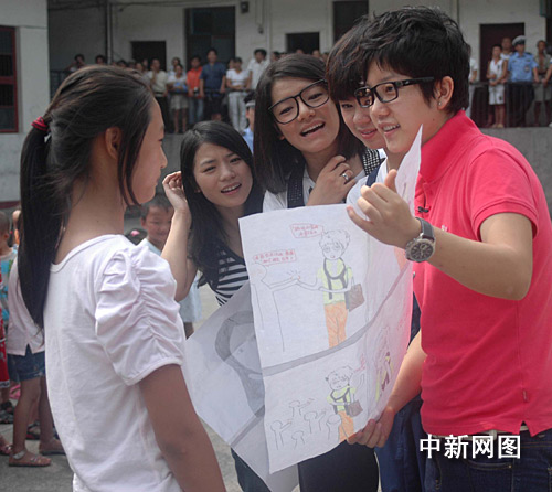 8月24日,2009年“快樂(lè)女聲”四強(qiáng)來(lái)到張家界武陵源天子山蘇州希望小學(xué)舉行牽手希望工程公益活動(dòng)。此次公益之行,四位“快女”不僅向?qū)W校贈(zèng)送了一批音樂(lè)設(shè)備,走進(jìn)校舍和學(xué)生們開(kāi)展交流互動(dòng)活動(dòng),同時(shí)還專程到4名貧困學(xué)生家庭走訪慰問(wèn)。王傳殊 吳勇兵 攝