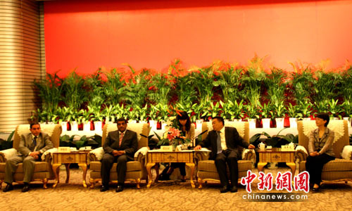 6月25日晚,中共中央對外聯絡部副部長李進軍(右二)、中共揚州市委書記王燕文(右一)在揚州迎賓館會見參加26日由中共中央對外聯絡部與中共揚州市委、揚州市人民政府共同主辦的中國與海灣阿拉伯國家石化產業合作論壇的海合會六成員國阿拉伯聯合酋長國、阿曼、巴林、卡塔爾、科威特和沙特阿拉伯的駐華大使或臨時代辦,以及全球最大的石油公司沙特阿美公司、沙特基礎工業公司、沙特扎米爾集團公司、阿聯酋國家石油公司、阿聯酋博祿石化公司、卡塔爾天然氣公司等多家海灣阿拉伯國家石化企業高層領導。圖左二為阿曼蘇丹國駐華大使阿卜杜拉·薩阿迪,左一為阿聯酋駐華大使歐麥爾·白伊塔爾。