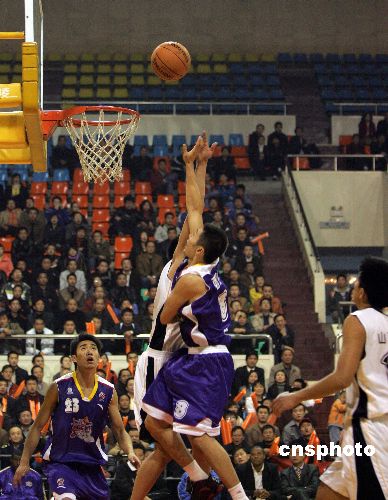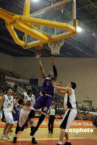 10月30日晚,在山西省太原市濱河體育中心2007-2008年CBA聯(lián)賽第二輪比賽中。山西中宇主場以102-95戰(zhàn)勝上海西洋,山西中宇取得新賽季首場勝利。中新社發(fā) 張?jiān)?攝