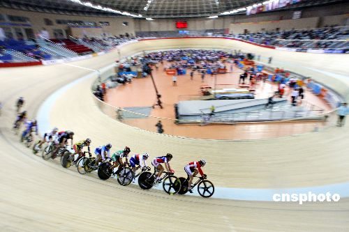 “好運北京”國際自盟場地自行車世界杯賽12月8日繼續(xù)在2008北京奧運會自行車賽場-老山自行車賽場舉行,為了爭奪北京奧運會的入場券,世界各路好手幾乎全部云集競逐。中新社發(fā) 任晨鳴 攝
