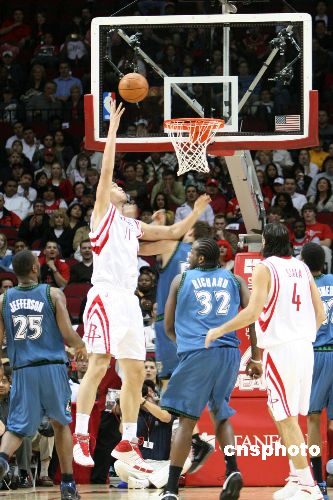 圖:NBA常規賽火箭主場大勝森林狼
