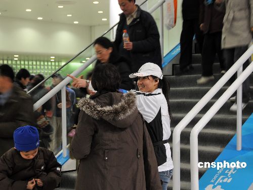 1月31日,國家游泳中心(水立方)迎來首場賽事——“好運北京”2008年中國游泳公開賽。在比賽場館的各個角落,都可看到經過培訓后上崗的志愿者,他們統一著裝、主動服務,獲得了觀眾的認可和贊賞。中新社發 馮軍 攝