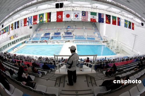 2月1日,“好運北京”2008年中國游泳公開賽首場決賽在“水立方”游泳館舉行。中新社發 吳芒子 攝