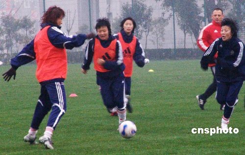 2月17日上午,中國女足在主教練伊麗莎白帶領下,在重慶文理學院足球訓練場冒著春雨進行“靈敏度”訓練及5打5的分組對抗訓練。中新社發 陳仕川 攝