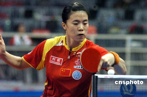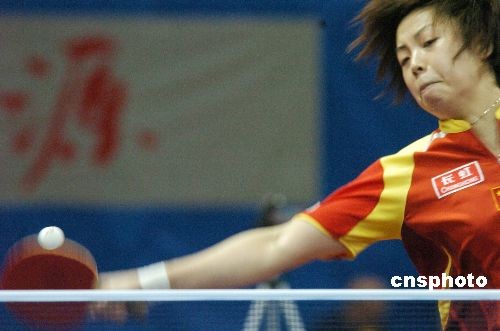 第四十九屆世界乒乓球錦標賽女團比賽二十四日于廣州正式開幕,中國女子乒乓球隊在廣州體育館首戰和以三比零戰勝俄羅斯隊。中新社發 柯小軍 攝
